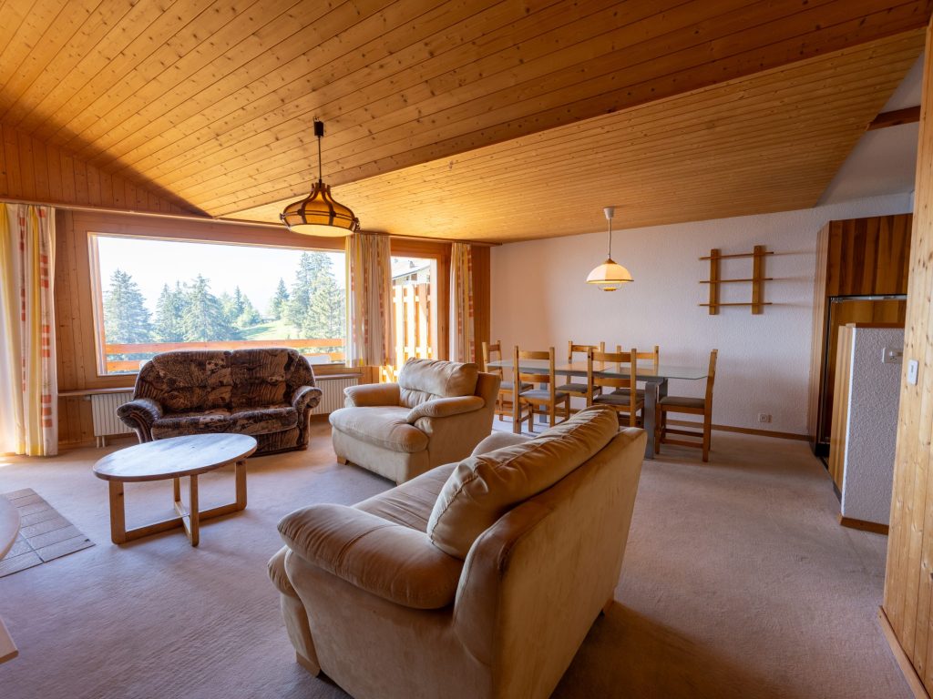 Cette grande suite rénovée d’environ 85 m2, spacieuse et sophistiquée, baignée de lumière naturelle est composée d’une cuisine aménagée moderne ouverte sur un grand salon séjour. Cette suite dispose également de deux salles de bains. Côté nuit, profitez de trois chambres dont deux avec deux lits simples et une avec quatre lits superposés. Profitez également du balcon avec sa vue spectaculaire sur les Alpes Suisses pour de parfaits moments de détente. Tout le confort est réuni pour passer un merveilleux séjour en montagne jusqu’à 6 personnes. Découvrez nos offres spéciales