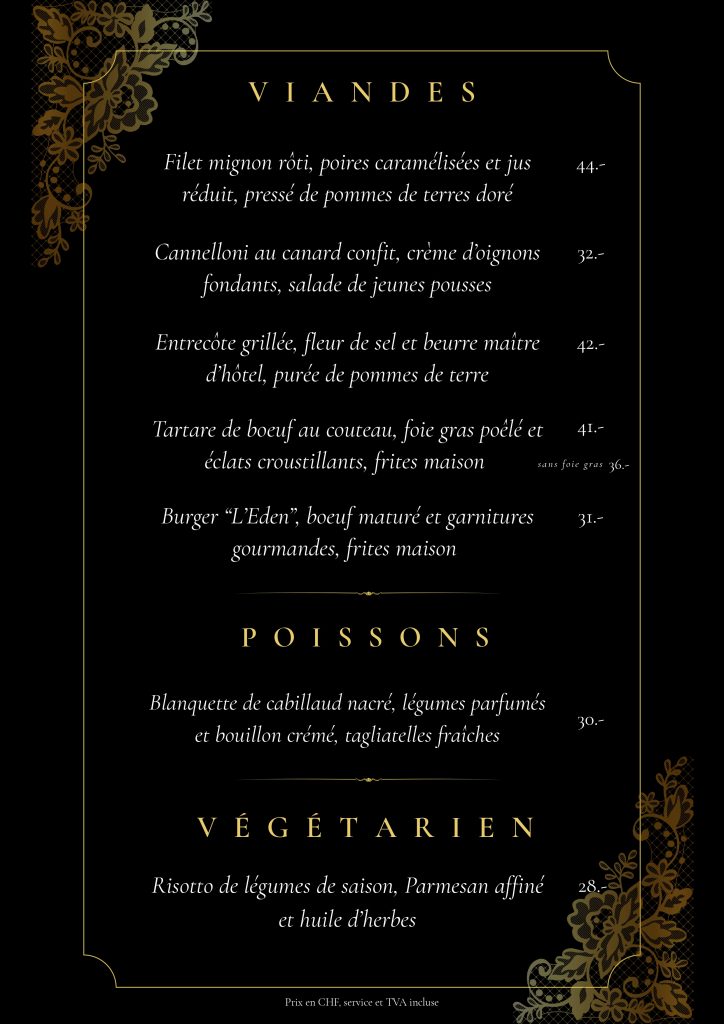 Ici vous trouverez une fusion de goût entre le style traditionnel et la fine cuisinetout en respectant l’art de la culture culinaire valaisanne et européenne, grâce à des matières premieres de grandes qualités que nous offre la région.